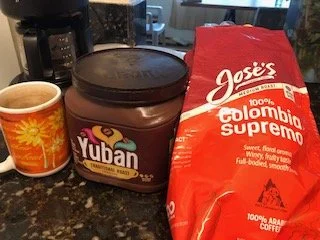 Not so often that I chew charcoal or what I might find after a campfire, kindling charred some, that I nibble on. Yet when I went into the terrain where the courage-ones go, meaning a local American grocery store, first, and on a tight budget, second, I bought Yuban coffee. Let's applaud that the Yu arrives from Yuletide when these original coffee beans began roasting in the 1930s to celebrate winter holidays. Today Yuban has migration roots, like most commercial edible sources worldwide, from one of the ag biz domains and that is kraftheinz. For the sake of perceived value, I bought a 1.5 pound tub at $18. And in a pinch I would buy again, yet the flavor was that sooty burnt chew, a cup of caffeine, sure, and grateful, clearly, and I worried about me and money.