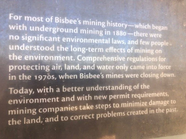 If you take an intensive copper mining history, add environmental awareness that mined lands had been stripped as far as earthly possible, then decades later work from a painter’s palette to apply bright murals on steep walls and a right is reserved for you to call the town Bisbee. Plenty art designs painted on walls that are often vertical since the town is embedded in the side of a steep mountain and immersed in an artsy vibe throughout. Kudos to the citizens’ pride and power to exist here, too. Would my serendipity pick axe be useful here to source bargains and sales and frugals? This town kept my skills lively adept.