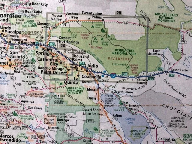 And at the Joshua Tree National Park station I smiled softly when learning that Minerva Hoyt was a Los Angeles socialite woman who reversed and halted the desert carnage happening in this area; thousands of cacti were being lifted for decorative usage in Los Angeles homes. In 1936 she succeeded persuasively enough so that President Roosevelt declared the desert environs a National Monument (eventually designated a National Park in 1994).